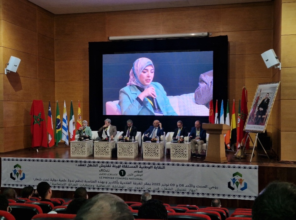 وجاء تنظيم هذا اللقاء العلمي، المنعقد يوم السبت 8 نونبر 2025، في إطار الإعداد للمؤتمر الوطني الأول للنقابة، وبمناسبة الذكرى المئوية لتأسيس جهاز تفتيش الشغل بالمغرب، وقد افتتحت الجلسة بكلمة الكاتب العام للنقابة، تلتها كلمات لعدد من المسؤولين، من بينهم كاتب الدولة المكلف بالشغل، وممثلة اللجنة الجهوية للمجلس الوطني لحقوق الإنسان، وممثلة مجلس جهة سوس–ماسة، وممثل مؤسسة وسيط المملكة.
