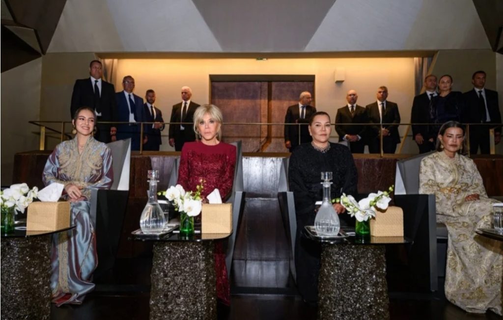 حضرت صاحبات السمو الملكي الأميرات للا خديجة، وللا مريم، وللا حسناء، رفقة بريجيت ماكرون، مساء اليوم الأربعاء، العرض الافتتاحي للمسرح الملكي الرباط، الصرح المعماري الأيقوني الذي يجسد العناية السامية التي ما فتئ الملك محمد السادس يوليها للفن والثقافة.