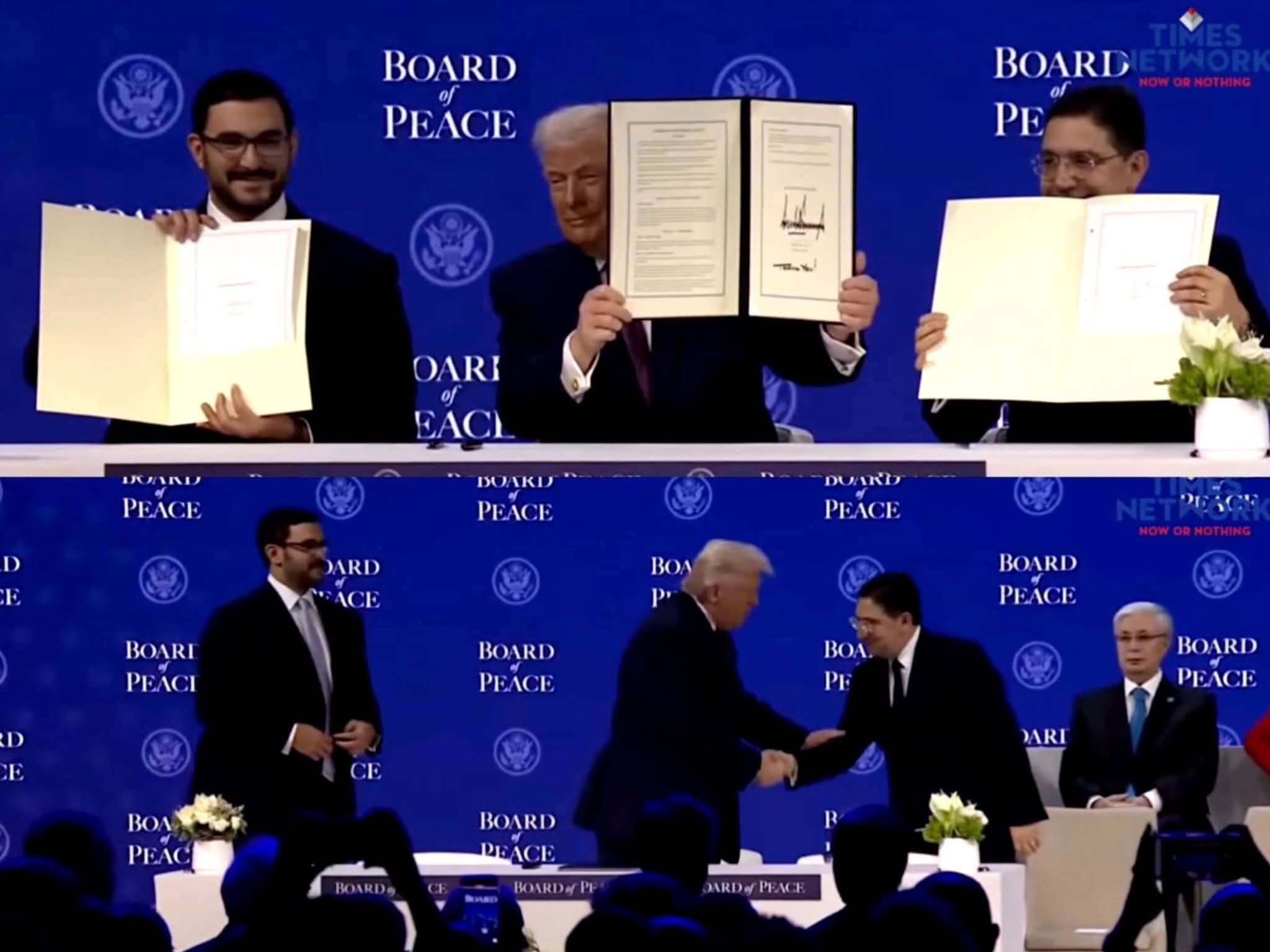 وجرى حفل التوقيع بحضور الرئيس الأمريكي دونالد ترامب، إلى جانب عدد من قادة وزعماء الدول المشاركين في أشغال المنتدى، في محطة دبلوماسية تعكس المكانة التي بات يحتلها المغرب على الساحة الدولية، ودوره المتنامي في دعم قضايا السلم والأمن العالميين.