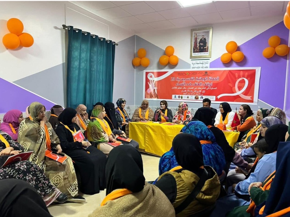 نظّمت جمعية الهدف للثقافة والفن والرياضة ببوجدور يوماً تواصلياً توعوياً حول مناهضة العنف ضد النساء، بمشاركة واسعة لمختلف الهيئات الرسمية والمدنية، وذلك في إطار الحملة الوطنية الرامية إلى تعزيز الوعي المجتمعي بحقوق المرأة وتقوية آليات الحماية والتمكين. وقد عرفت الجلسة الافتتاحية حضور وفود متعددة، ما أبرز أهمية الموضوع وتعدد الفاعلين المنخرطين فيه.