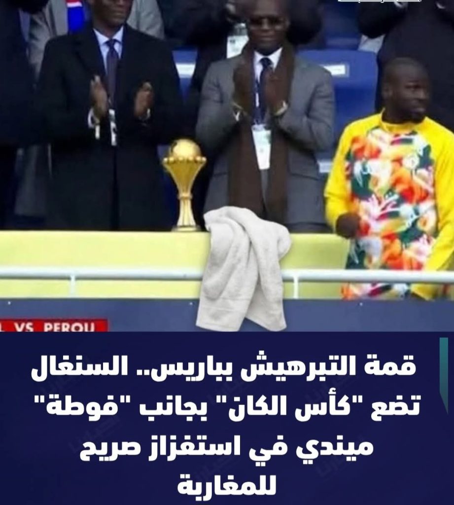 ولم يتوقف الاستفزاز عند هذا الحد، بل تعمدوا وضع “فوطة” بجانب الكأس، في إشارة صريحة ومستفزة لواقعة إبعاد منشفة الحارس “ميندي” خلال المباراة النهائية، والتي كانت تخفي خلفها ممارسات وشبهات “تعويذات سحرية” أثارت ضجة واسعة في الأوساط الرياضية حينها، مما يؤكد رغبة الجانب السنغالي في تحويل هذا الحفل إلى ساحة لـ “التبرهيش” والتشويش على المكتسبات التي حققها الملف المغربي.