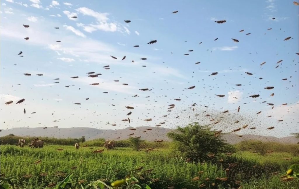 وبعدما أن شغلت الرأي العام بمدينة العيون وضواحيها في فبراير الماضي جرى تسجيل وصول أسرابٍ محدودة من الجراد الصحراوي، هذا الأسبوع، إلى تراب جهة سوس ماسة، بما يشمل إقليمي اشتوكة أيت باها وطاطا.