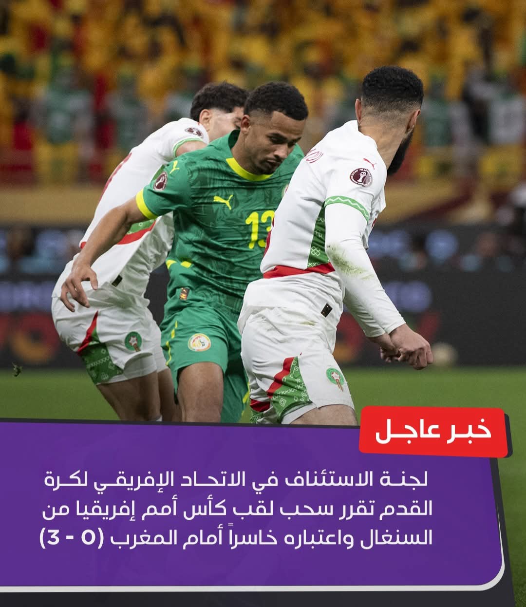 شاركها فيسبوك تويتر لينكدإن بينتيريست البريد الإلكتروني Copy Link لجنة الاستئناف في الاتحاد الإفريقي لكرة القدم تعتبر منتخب السنغال خاسراً أمام المغرب 0 – 3 في نهائي كأس أمم إفريقيا