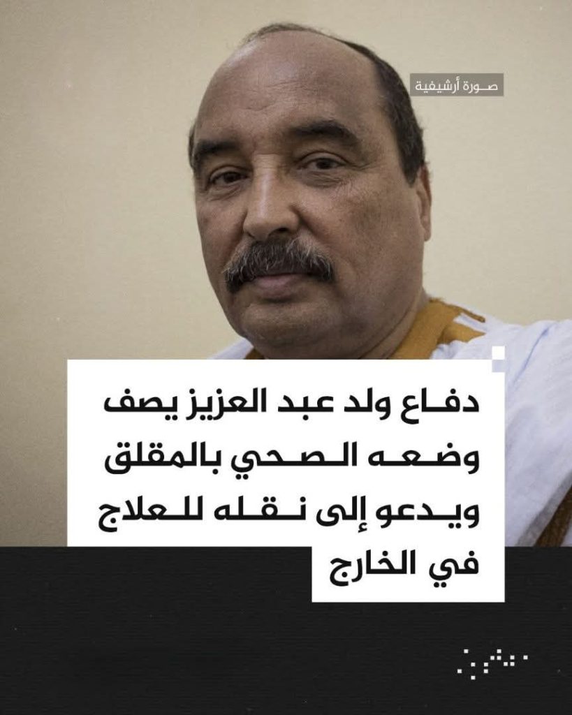 وأوضح ولد اشدو، في تصريح إعلامي، أن الوضع الصحي للرئيس السابق يستدعي عناية طبية متخصصة غير متوفرة محلياً، مشدداً على ضرورة تمكينه من حقه في العلاج وفق ما يكفله القانون والاعتبارات الإنسانية.